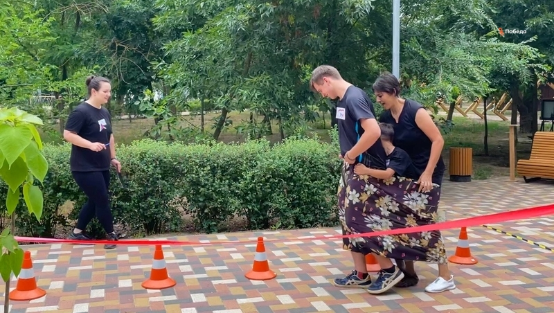 Объединил семьи также конкурс «Семейные штаны». В нём команды надевали огромные штаны и пытались все вместе пройти через препятствия, обозначенные конусами. Испытание проводилось на время.