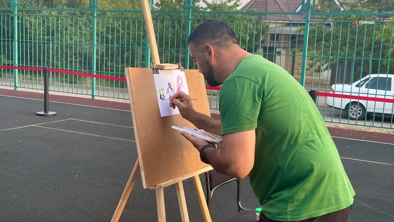 Первая эстафета называлась «Семейный портрет». Командам предстояло нарисовать портреты своих семей на чистом листе, закреплённом на мольберте. Победителем становилась команда, которая справилась с заданием быстрее остальных.