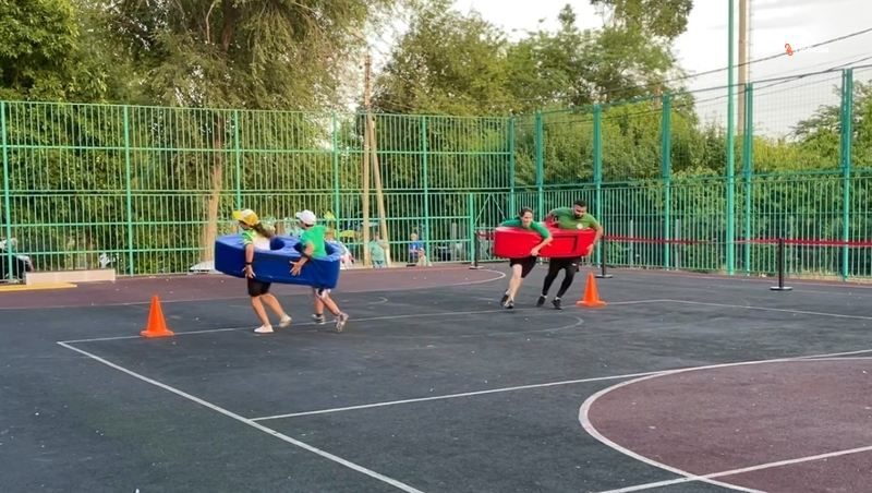 В «Водоносе» на спины участников надевали ведро с пластиковыми шариками. Члены команд по очереди оббегали конусы с ведром на спине. Главная задача – прибежать как можно быстрее, не уронив шарики.