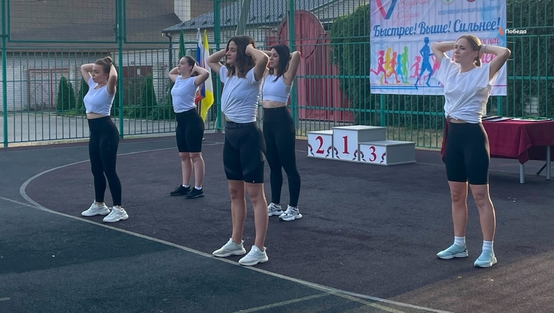 Спортивная программа началась с разминки, которую провела команда спортсменов.