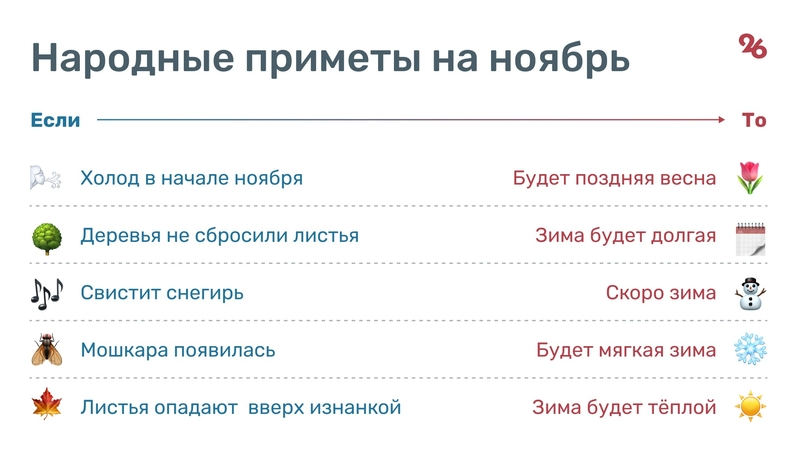 Во второй половине октября начнётся похолодание, небо затянут облака, а температура днём составит около +16 градусов. К концу месяца температура упадёт до +12 градусов, а ночью термометры покажут около +4 градусов.