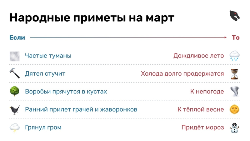 На протяжении всего месяца преобладать будет облачная погода. Дожди ожидаются с 16 по 20 марта, а также 23, 24, 26 и 29 числа. Ясные солнечные дни прогнозируются 7, 8, 25, 28, 30 и 31 марта.