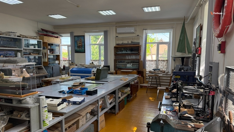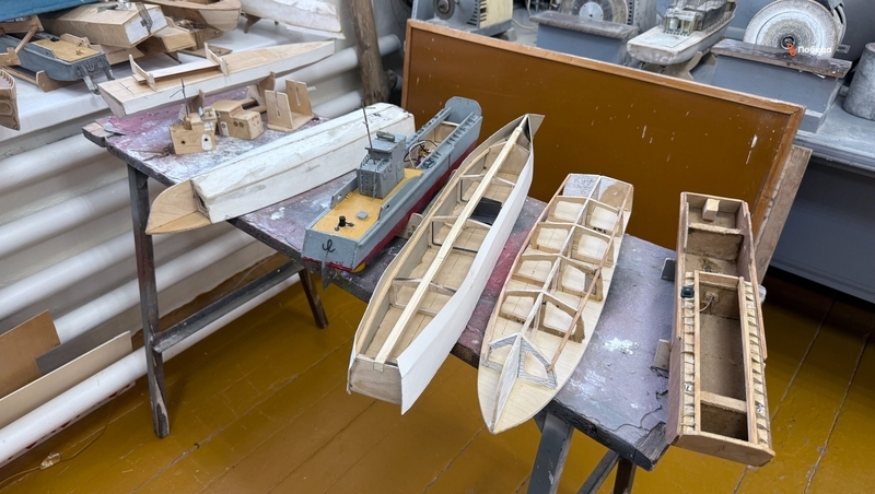В судомодельном зале собрано множество кораблей — от изящных миниатюр до внушительных масштабных судов. Это настоящая мастерская, оборудованная всем необходимым для проектирования, сборки и отделки моделей.