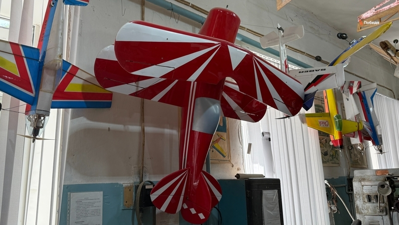 Напротив зала с кораблями в своём помещении трудятся авиамоделисты. Педагог Юрий Агеев поделился, что занятия посещают дети, начиная с 10 лет. Все модели здесь ребята собирают вручную.