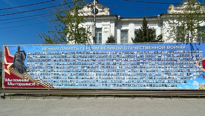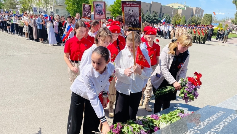 Память героев-земляков почтили минутой молчания, а кадеты, преклонив колено, возложили красные гвоздики к «Стене памяти». Ветеранам были вручены цветы, а на площади развёрнута большая Георгиевская лента.
