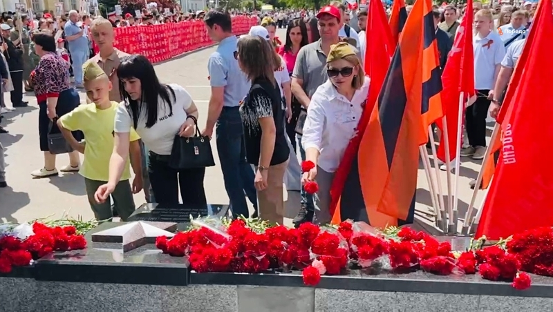 В знак глубокого уважения к ветеранам, юнармейцы исполнили знаменитую песню «День Победы». После этого прошёл митинг памяти. Всем ветеранам, труженикам тыла и участникам СВО аплодировали, а дети подарили им цветы. Особым моментом стала минута молчания, после которой вся площадь направилась к мемориалу «Мать-Родина». Здесь возложили венки и цветы к Вечному огню в знак глубочайшего уважения героям, подарившим мир стране 80 лет назад.