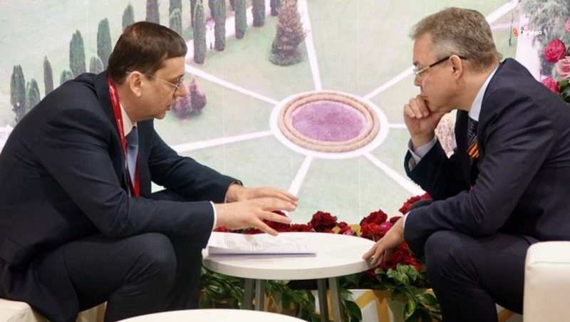 В первый день выставки губернатор Ставрополья Владимиров заключит четыре соглашения о сотрудничестве, которые затронут IT, предпринимательство и другие важные сферы. Глава края встретился представителями крупных фирм. Речь шла о развитии в регионе инвестстандарта, искусственного интеллекта и прочих прогрессивных технологий и мер.
