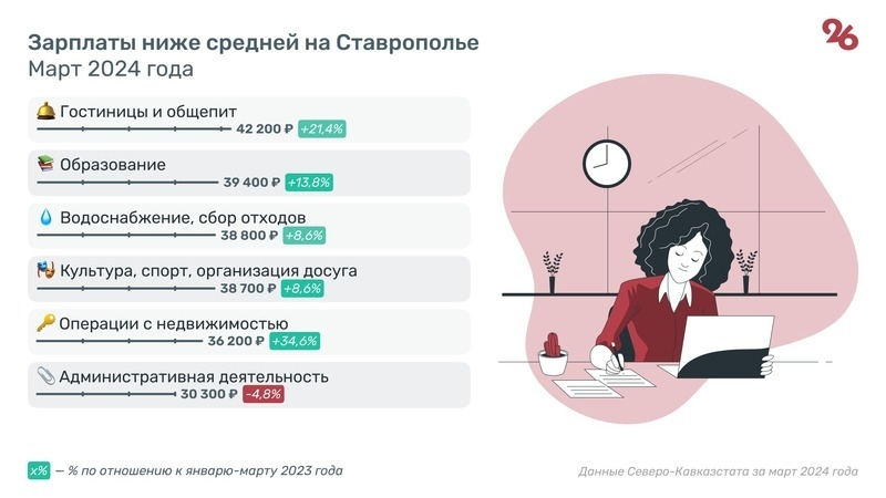 Кроме того, ниже средней по краю зарплаты получали работники гостиниц и общепита, а также ставропольцы, занятые в сфере образования.