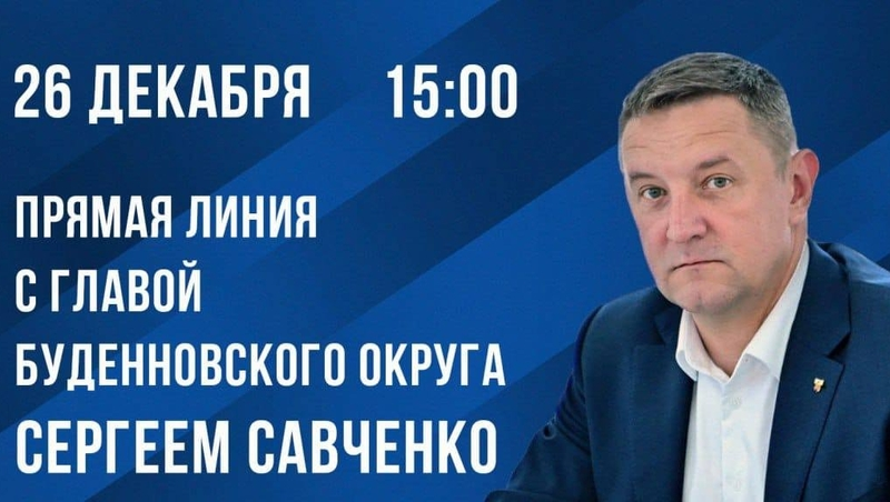 Прямая линия с главой Прикумья Сергеем Савченко состоится 26 декабря. Жители округа смогут задать вопросы во время эфира на радиостанции «Радио точка» - 104.FM. Также Савченко будет вести трансляцию в своих соцсетях — на странице во «ВКонтакте» и в Telegram-канале.