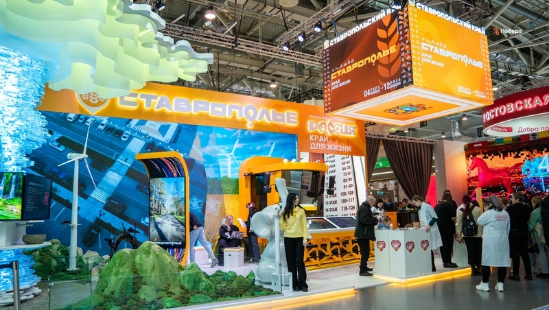На столичной выставке «Россия» Ставропольский край представил результаты развития региональной инфраструктуры. Посетители могли принять участие в интерактивной игре по строительству небольшого города с помощью специальных кубиков. Правильно расположенные кубики загорались зелёным цветом. Также гости могли собрать семь объектов благоустройства общественного пространства на сенсорных панелях. Особый интерес вызвал макет «Сквера Героев России», который иллюстрировал разделение территории на шесть различных природно-климатических зон, а также специально оборудованные зоны для активного времяпрепровождения, занятий спортом, прогулок и отдыха на свежем воздухе, в том числе для людей с ограниченными возможностями здоровья.