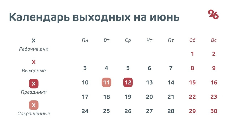 В 2024 году День России будет отмечаться в среду, 12 июня, поэтому в этот день ставропольцы будут отдыхать. При этом предшествующий ему вторник, 11 июня, является предпраздничным днём. В связи с этим, рабочий день будет сокращён на один час.