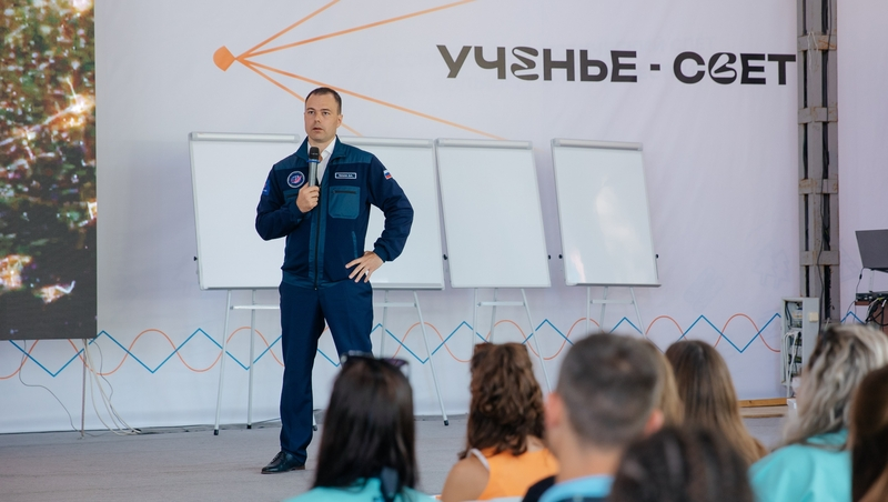 Утром Дмитрий Петелин провёл для участников молодёжного форума «Машук» динамичную разминку. Затем космонавт-испытатель побеседовал с ребятами в формате «Уроков о важном», где поделился уникальным опытом своей профессии.