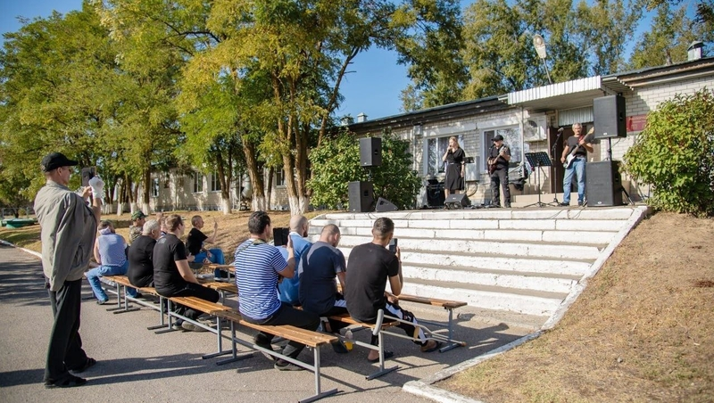 Накануне для военнослужащих, проходящих реабилитацию, выступили артисты с патриотическими песнями о любви к Родине, долге и чести. Главным исполнителем стала рок-группа «Тактика».