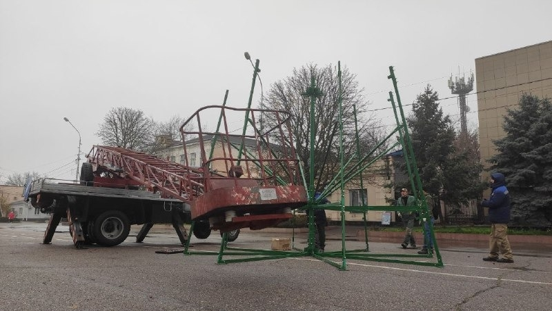 По его словам, возле зимней красавицы поставят уже знакомую местным жителям инсталляцию –– оленя с санями и музыкальное трио снеговиков.
