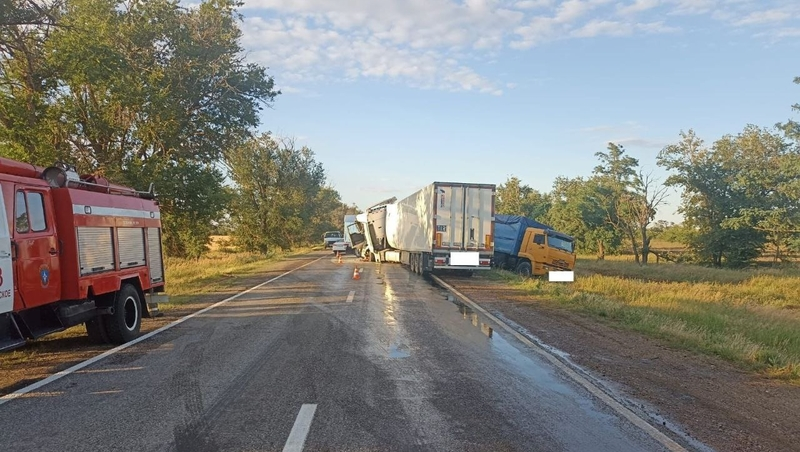 ДТП произошло 27 июня на 232 км автотрассе «Кочубей – Нефтекумск – Зеленокумск – Минводы». Водитель грузового автомобиля КамАЗ выполнял обгон на разрешённом участке, но не убедился в том, что встречная полоса свободна. В результате, выехав на встречку, грузовик столкнулся с грузовым тягачом SITRAK.